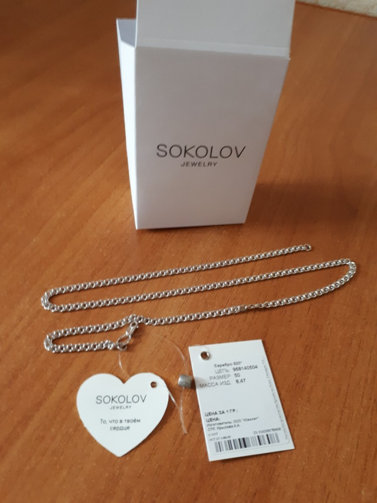 Была очень довольна покупкой, но через полгода цепочка поблекла и смотрится ужасно, хотя чишу специальной салфеткой для серебра, второе разочарование от бренда "соколов". Кулон на цепочке от другого производителя совсем не изменился.До этого носила цепочку с алмазной гранью от другого производителя, даже чистить не надо было, в течении 7 лет была как только купленная.