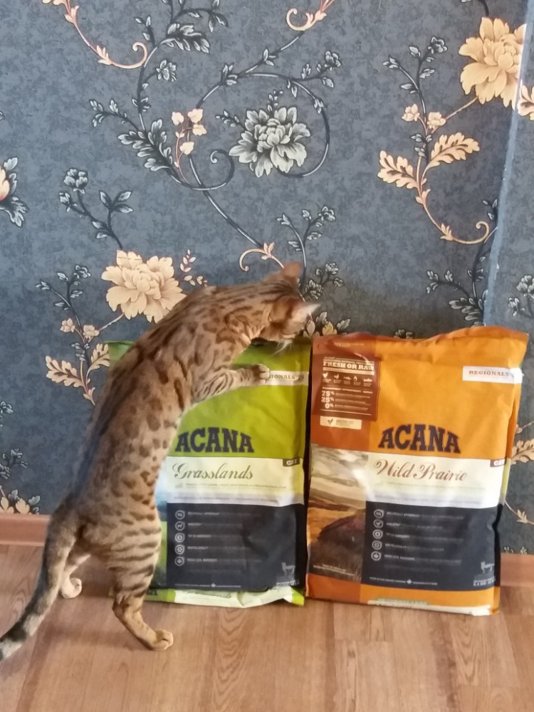 Акану брала давно. Потом она резко исчезла из продажи. И вот, нашла на Флип.кз. У меня два кота дворянской породы, и хочется им дать всё лучшее в их нелёгкой кошачьей жизни. Перебрала много кормов, самые лучшие- Акана и Ориджен. Корма канадского производства, и этим все сказано, никакого мясного порошка, никакой пшеницы, никакой куриной печёнки. Всё это не полезно котам, породным и беспородным. Корм калорийный, хватает надолго, какахи не воняют, питомцы полны энергии. До этого брала Акану из рыбы, мои не одобрили, взяла ягнёнка, едят с удовольствием и наедаются. Единственное- выдерживание норму потребления, от него кастрированные быстро набирают вес, своим даю дозировано.