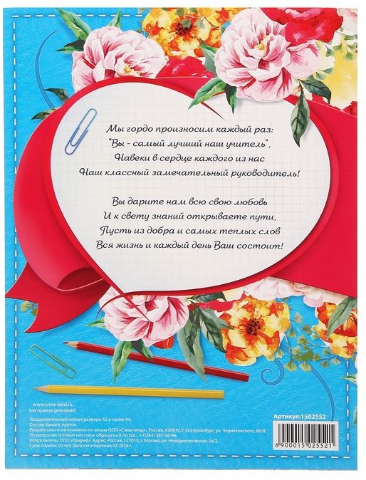Плакат поздравительный в папке «Любимому классному руководителю»В данный момент этот товар отсутствует в продаже. Возможно, у нас найдется аналогичный или похожий товар здесь. Плакат поздравительный в папке «Любимому классному руководителю». |