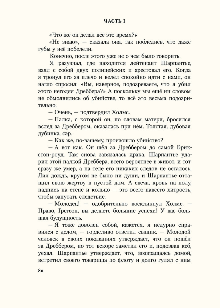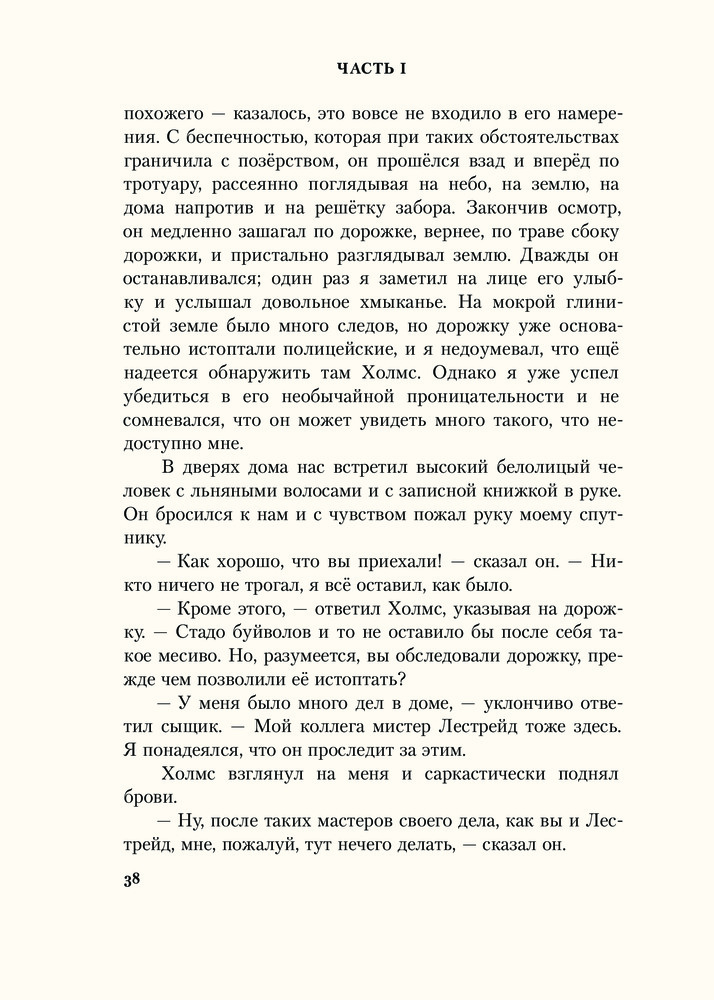Этюд в багровых тонахВ данный момент этот товар отсутствует в продаже. Возможно, у нас найдется аналогичный или похожий товар здесь. Серия: БИСС Первая книга серии «БИСС» Артура Конана Дойла. В издании — детективная повесть «Этюд в багровых тонах», открывающая цикл произведений о знаменитом сыщике Шерлоке Холмсе и его компаньоне докторе Ватсоне. Чёрно-белые иллюстрации были созданы Рихардом Гутшмидтом в 1902 году, и именно его работы признаны классическими. Повесть также дополнена цветными иллюстрациями Наталии Михальчук, они нарисованы специально для нашего издания. |