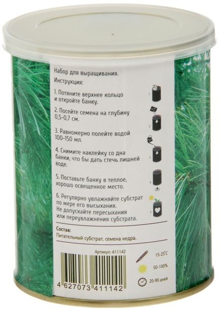Bontiland Набор для выращивания «Кедр»В данный момент этот товар отсутствует в продаже. Возможно, у нас найдется аналогичный или похожий товар здесь. Серия: Растение в банке Росток могучего кедра «Bontiland» появится у вас дома на 20-90 день после посадки при температуре 10-25 градусов и освещённости непрямыми солнечными лучами. |