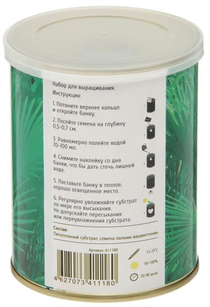 Bontiland Набор для выращивания «Пальма Вашингтония»В данный момент этот товар отсутствует в продаже. Возможно, у нас найдется аналогичный или похожий товар здесь. Серия: Растение в банке Обзаведитесь своим собственным газоном, который будет радовать вас свежестью и летними красками круглый год. Растущая трава в консервной банке наполнит ваш дом или рабочее место особым уютом, и не потребует особой заботы. В набор входит все необходимое: «горшочек», семена, грунт и инструкция. Вам нужно только открыть банку, посадить семена и поливать их. В скором времени вы увидите плод ваших стараний. Зелень можно выращивать где угодно, вам необязательно держать её на подоконнике или создавать тепличные условия, достаточно уютной для растения обстановки и источника освещения. |