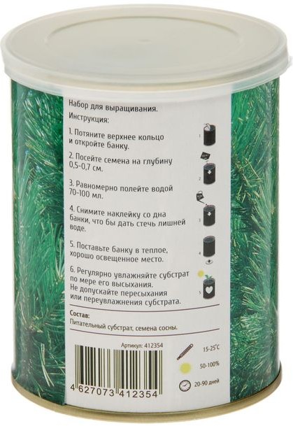 Bontiland Набор для выращивания «Сосна»В данный момент этот товар отсутствует в продаже. Возможно, у нас найдется аналогичный или похожий товар здесь. Серия: Растение в банке Обзаведитесь своей собственной сосной, которая будет радовать вас свежестью и летними красками круглый год. Растущая сосна в консервной банке наполнит ваш дом или рабочее место особым уютом, и не потребует особой заботы. В набор входит все необходимое: «горшочек», семена, грунт и инструкция. Вам нужно только открыть банку, посадить семена и поливать их. В скором времени вы увидите плод ваших стараний. Сосну можно выращивать где угодно, вам необязательно держать её на подоконнике или создавать тепличные условия, достаточно уютной для растения обстановки и источника освещения. |