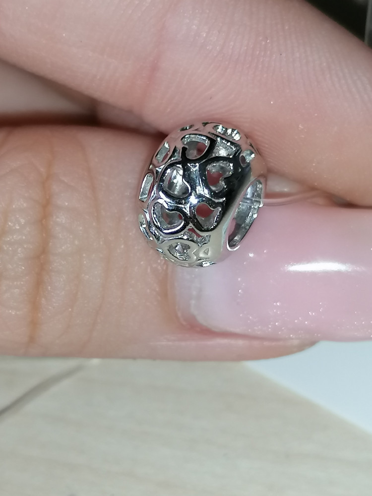 Очень красивый шарм. Прекрасно подходит к браслету типа "Пандора". Видимо благодаря радированию он не окисляется и очень красиво блестит.