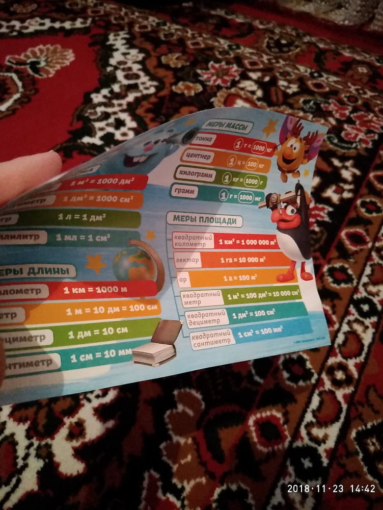 Плакат яркий, информативный. Прикрепили над детским столом, чтобы ребенок запоминал быстрее, не заглядывая в учебник. Жаль, что размер маловат - как один тетрадный лист.