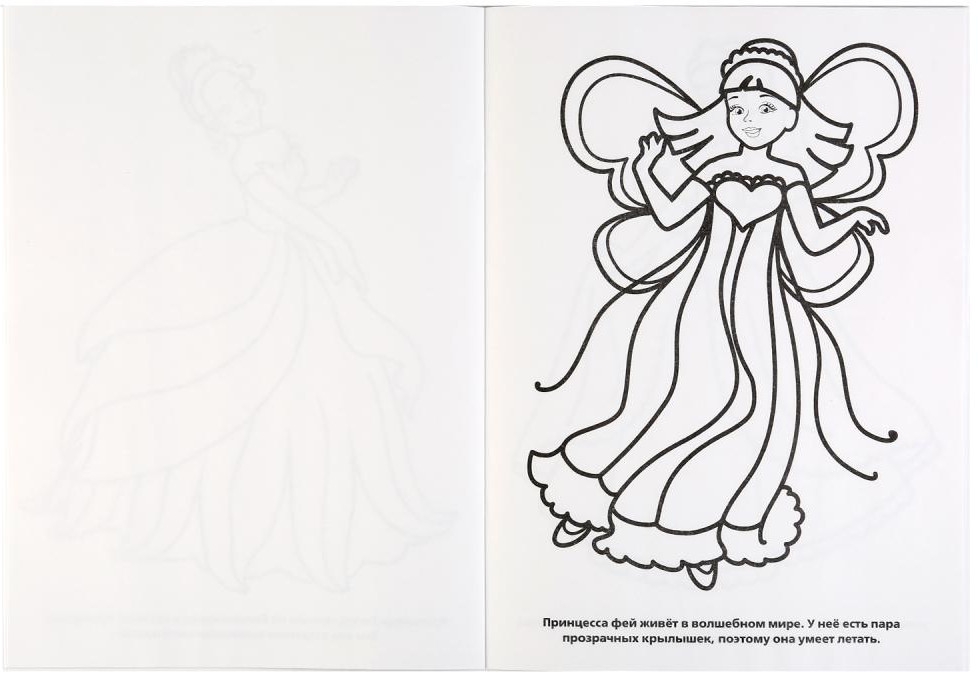 Прозрачные страницы чередуются с рисунками известных диснеевских принцесс. Обложка плотная, картинки не сложны для ребёнка 4-5 лет.