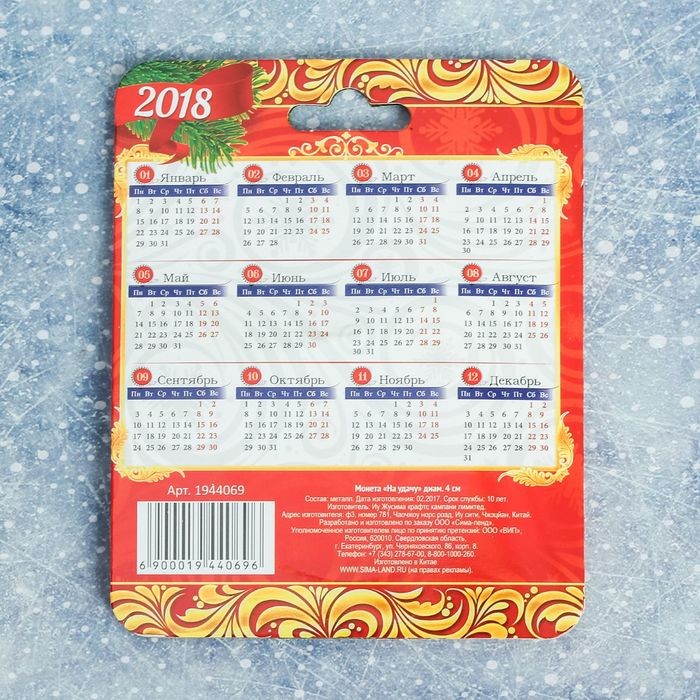 Монета новогодняя «На удачу»В данный момент этот товар отсутствует в продаже. Возможно, у нас найдется аналогичный или похожий товар здесь. Монета новогодняя «На удачу». |