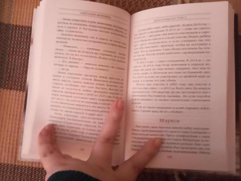 Хороший,твёрдый переплёт. О содержании не говорю---Маринина автор ,и,этим все сказано.
