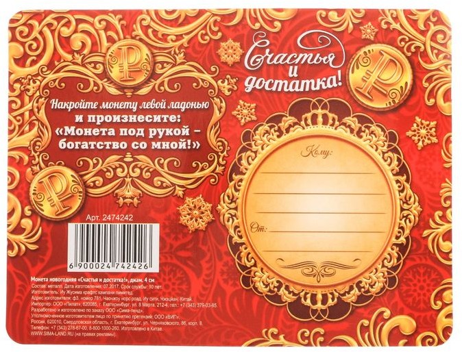 Отзывы «Монета новогодняя «Счастья и достатка!»»
