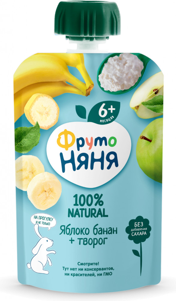 ФрутоНяня Пюре «Яблоко, банан с творогом»+15 вкус сладость безопасность