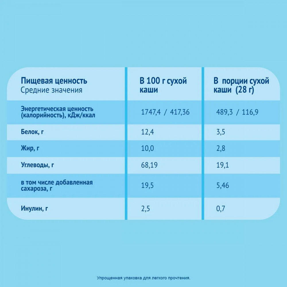 💳 Оплатить за товар можно при получении 🇰🇿 Есть бесплатная доставка по Казахстану от 1 дня 🎁 Копите бонусы с каждой покупки Серия: Молочная Для детей старше 4 месяцев. Идеально подходит в качестве первого прикорма. Обогащена витаминами и пребиотиками, которые способствуют укреплению иммунитета ребенка за счет образования полезной микрофлоры. Именно в этом возрасте возрастает потребность ребенка в потреблении большего количества калорий с пищей. |