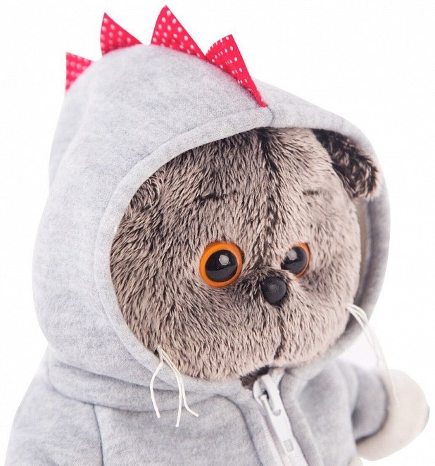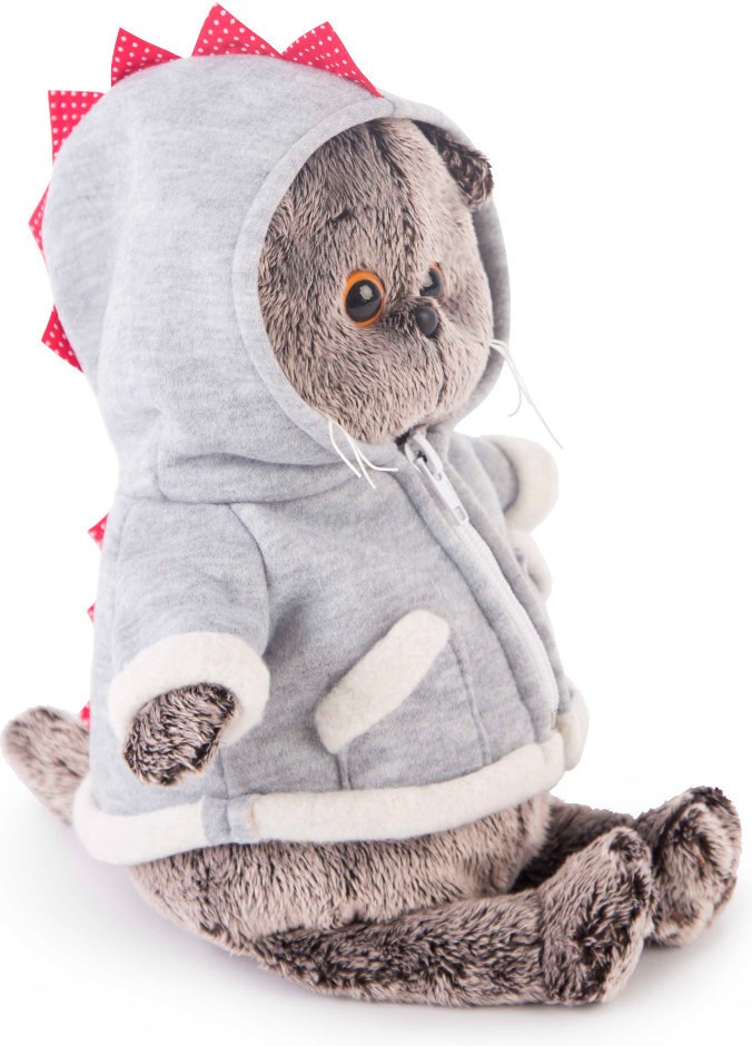 Кот Басик — галантный вислоухий шотландец с трогательными глазками и усиками-ниточками, торчащими во все стороны. По задумке дизайнера глазки у Басика разного размера, чтобы взгляд был мультяшно удивленным. Дымчатый шотландец «живет» в коробке-переноске, изготовленной из плотного крафт-картона. Очень презентабельно и стильно! Как любому породистому коту, Басику положен паспорт. И он имеется на обратной стороне коробки. Составлен с юмором и вызывает улыбку.