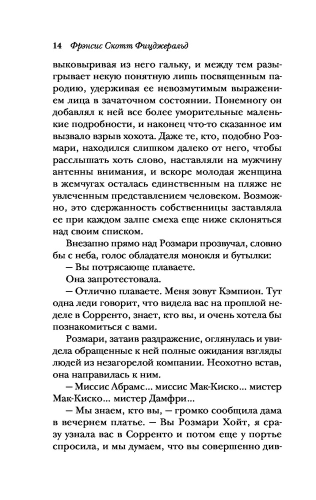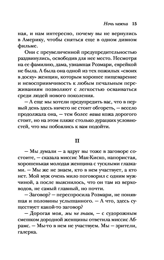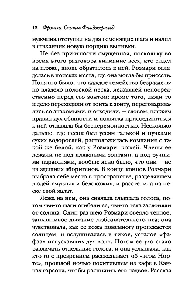 Прочла с удовольствием. Тонкая игра писателя с нашим сознанием. Ждешь одного, получаешь совершенно иное, хотя... Так и должно быть. Если читать вдумчиво, догадываешься, чем закончится история Дика и Николь.