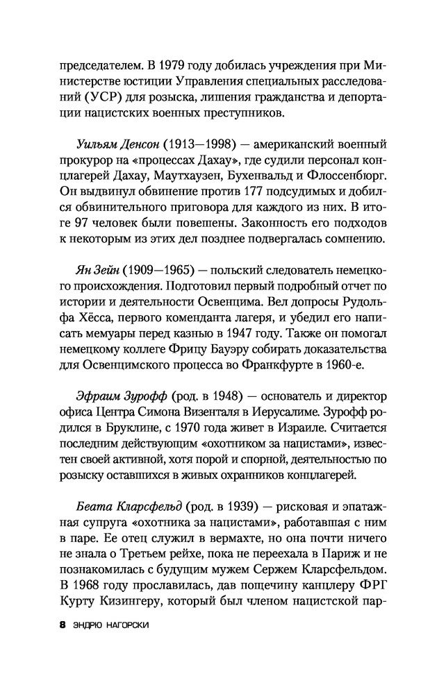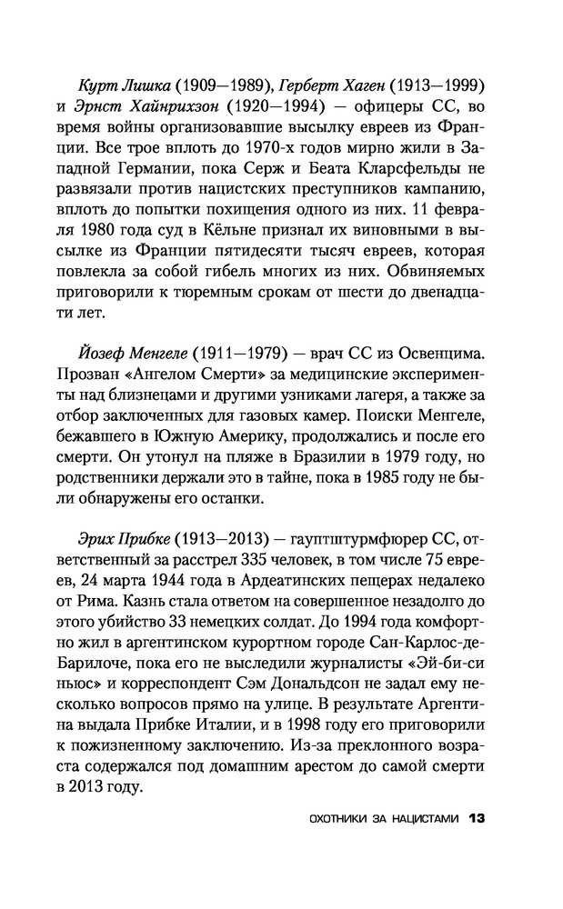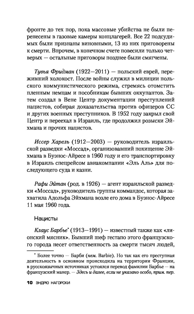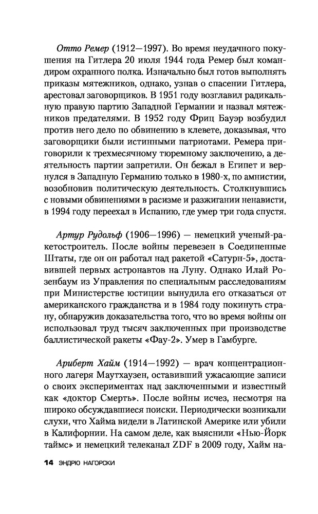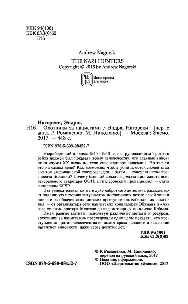 Охотники за нацистамиВ данный момент этот товар отсутствует в продаже. Возможно, у нас найдется аналогичный или похожий товар здесь. Нюрнбергский процесс 1945—1946 гг. над руководством Третьего рейха должен был показать всему человечеству, что главные виновники «чумы XX века» понесли справедливое наказание. Но так ли это на самом деле? Как возможно, чтобы убийца сотен людей стал агентом американской контрразведки, а затем — консультантом президента Боливии? Почему бывший солдат вермахта смог занять пост генерального секретаря ООН, а гитлеровский пропагандист — стать канцлером ФРГ? |