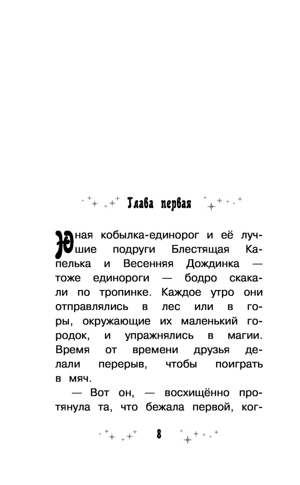 Шрифт книжки немаленький, легко воспринимается ребёнком, купила дочке, 8 лет, в подарок, она читает с удовольствием! Если бы были ещё иллюстрации, было бы замечательно!