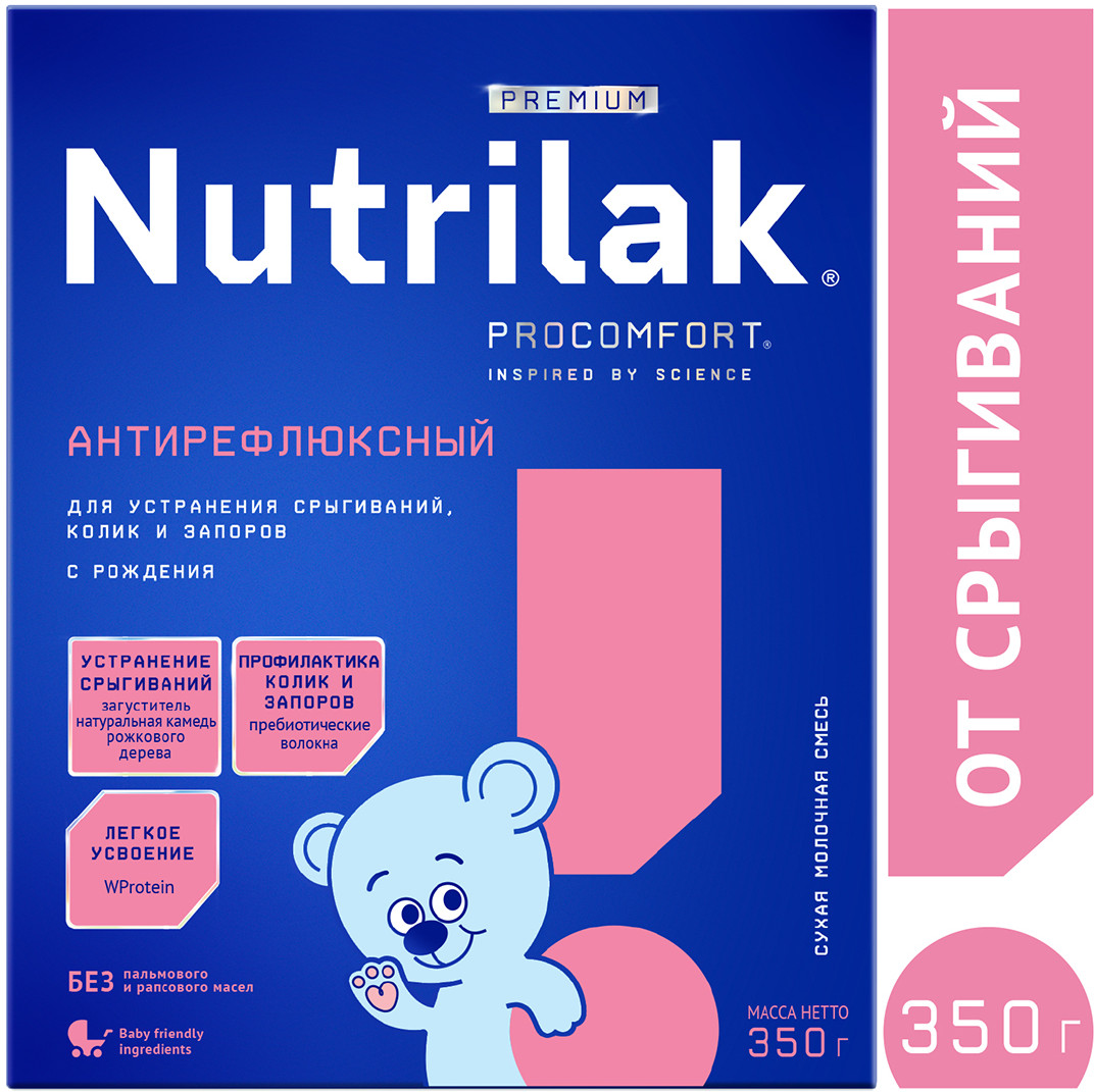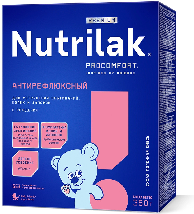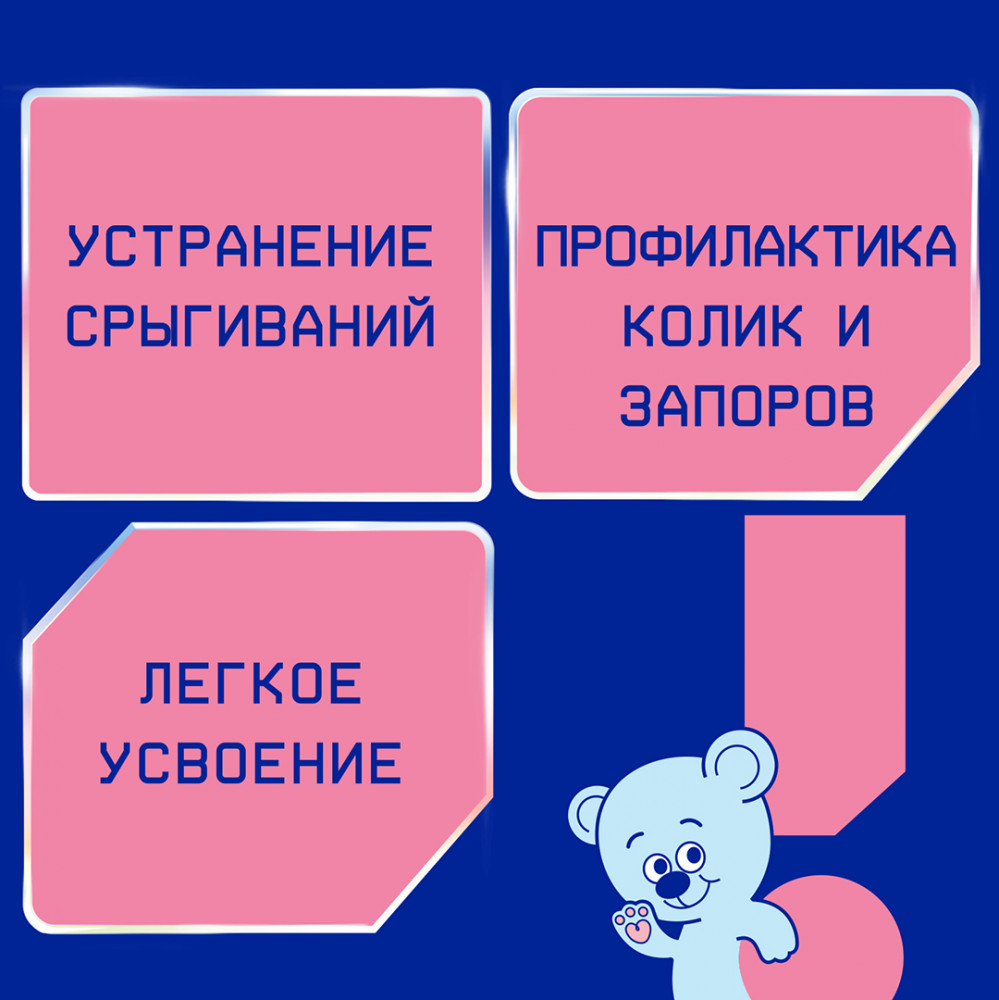 Сухая деминерализованная молочная сыворотка, сухое цельное молоко, растительные масла (подсолнечное высокоолеиновое, соевое, кокосовое), мальтодекстрин, сухое обезжиренное молоко, загуститель (натуральная камедь рожкового дерева), молочный жир, рыбий жир (источник докозагексаеновой кислоты DHA), минеральные вещества (кальция карбонат, калия хлорид, натрия хлорид, магния хлорид, калия цитрат, калия фосфат, железа (II) сульфат, цинка сульфат, меди сульфат, марганца хлорид, йодид калия, селенит натрия), витамины (L-аскорбиновая кислота, DL-альфа- токоферола ацетат, никотинамид, D-пантотенат кальция, рибофлавин, ретинола ацетат, пиридоксин гидрохлорид, тиамина гидрохлорид, фолиевая кислота, филлохинон, D-биотин, D3 холекальциферол, цианкобаламин), эмульгатор (соевый лецитин), таурин, инозит, нуклеотиды (цитидин-5’- монофосфорная кислота, уридин-5’- монофосфат динатриевая соль, аденозин-5’-монофосфорная кислота, гуанозин-5’-монофосфат динатриевая соль, инозин-5’-монофосфат динатриевая соль), L- карнитин, антиокислитель (L-аскорбилпальмитат).