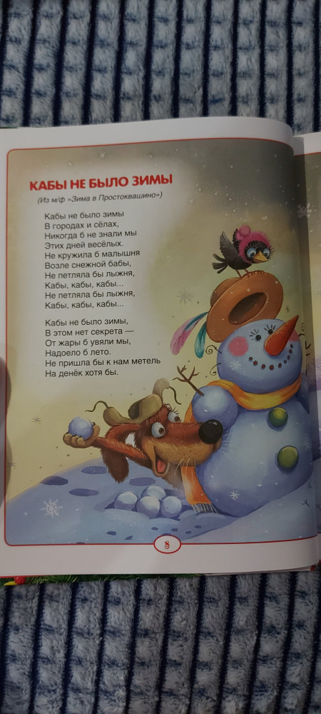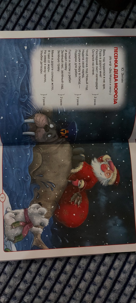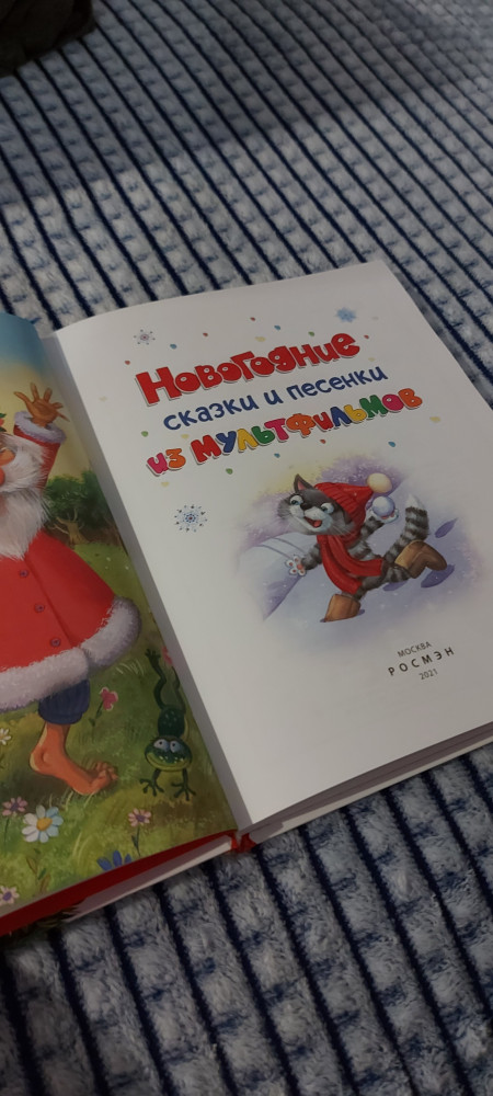 Книга очень красивая, красочная, будет очень интересна в качестве подарка ребёнку, есть и новогодние песенки из мультфильмов и просто новогодние истории. Книга своих денег стоит, я не пожалела что взяла