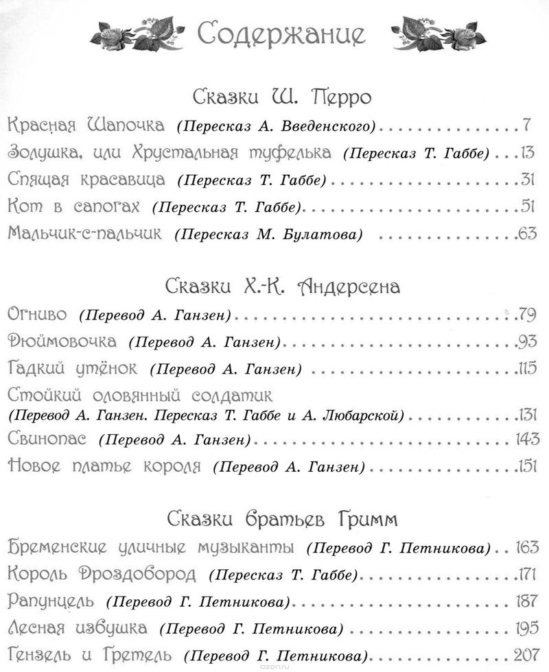 Долго выбирала сборник зарубежных сказок для детей, чтобы были основные, самые известные, в одной книге. Порадовало, что оглавление есть в кате "Пролистать книгу", не у всех книг тут его в описание товара добавляют. Оформление шикарное просто. Переплет твердый, листы белые, плотные, на каждой странице красивые не дурацкие иллюстрации, цветной срез. Всем довольна. Единственная рекомендация мамам, прежде чем давать ребенку читать сказку Мальчик-с-пальчик, прочитайте сначала ее сами. Мне сын ее читал вслух и ничего его там не пугало и не смущало, да и меня если честно тоже, но дедушка вот сказал что в свое время читал эту сказку в другом изложении, где было гораздо меньше описаний всяких действий людоеда. Вдруг кому-то важно, лучше сначала сами оцените. А так всем довольна, качество супер.