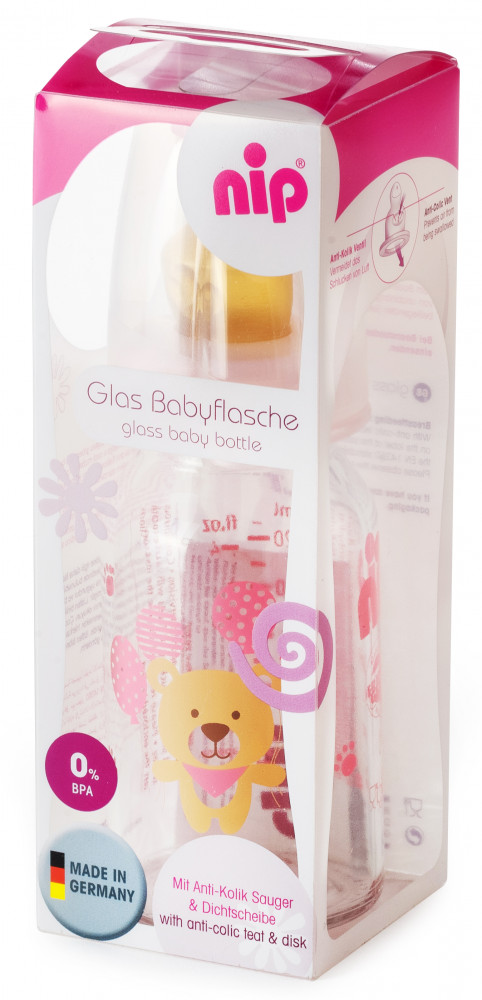 NIP Бутылочка стеклянная с соской из латексаВ данный момент этот товар отсутствует в продаже. Возможно, у нас найдется аналогичный или похожий товар здесь. Детская бутылочка выпускается в комплекте с соской. Антиколиковое отверстие предотвращает заглатывание воздуха. Рекомендуемый возраст: с рождения. |