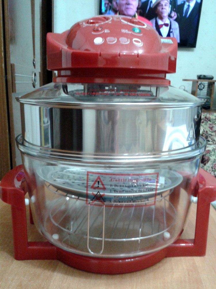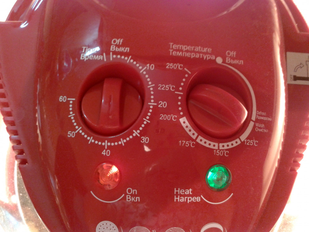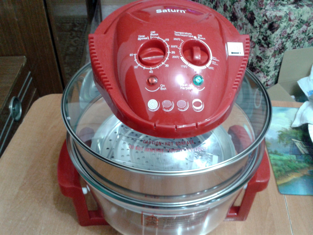 Хороший и не заменимый аэрогриль (в диаметре 33+/-35 с ручками). Видна стадия приготовления из-за прозрачности чаши (чаша объемная и это+). Практически не слышно, как работает. В общем, масса плюсов. Главное, осталось приноровиться к придумыванию блюд (если честно, то в книге рецептов приложенной к аэрогрилю я рецептами не восхитилась). Рекомендую к покупке. Магазину спасибо за гибкость в цене при продаже.