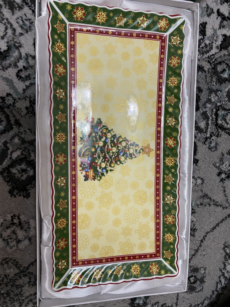 Блюдо выполнено из фарфора. Идеально подходит для использования дома, станет замечательным новогодним подарком.