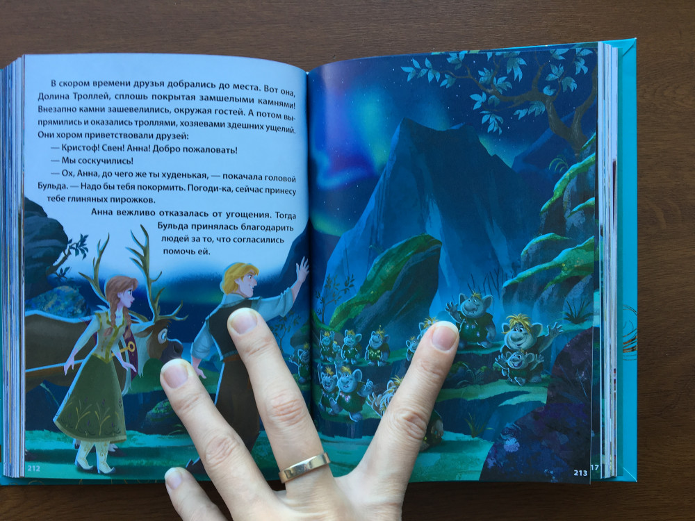 Книга очень красивая, яркая, отличные страницы. Но вот обложка... за такую цену можно было б сделать картонную и размер немного побольше. Она толстая и из-за этого немного неудобно листать. Но в любом случае, это лучший вариант книги из имеющихся! Рекомендую однозначно!