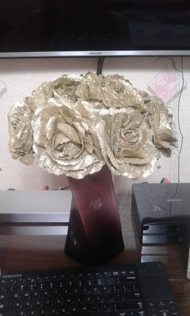 Мне розы очень понравились. Очень красиво смотрятся, конечно есть небольшие минусы, сыпится блеск и некоторые были помяты, но это легко исправляется. В целом букет получается превосходным, рекомендую!!!