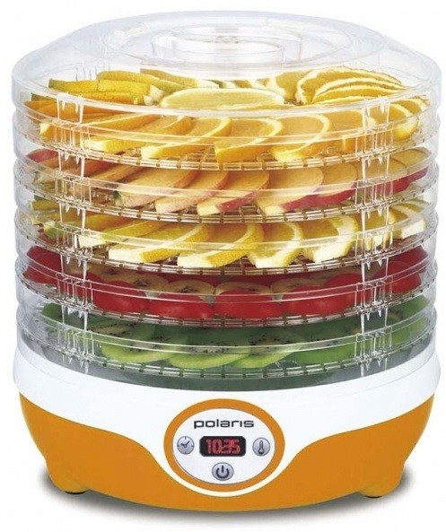 Polaris Сушилка для овощей и фруктов PFD 0605DВ данный момент этот товар отсутствует в продаже. Возможно, у нас найдется аналогичный или похожий товар здесь. Яркая и многофункциональная сушка POLARIS PFD 0605D не только украсит любую кухню, но и позволит сделать заготовку на зиму, сохранив все полезные качества овощей и фруктов. Постоянный подогрев и конвекция существенно сокращают время приготовления. Сушка POLARIS PFD 0605D оснащена 5 поддонами, в которые можно сразу закладывать большой объем продуктов. Возможность регулировать температуру от 35 до 75 градусов позволяет не только сушить фрукты и овощи, но и заготавливать лекарственные и пряные травы и ароматные лесные грибы. Более того, модель подходит для некоторых рецептов приготовления вяленого мяса и птицы. Поддоны прозрачные и позволяют наблюдать процесс приготовления, все они легко разбираются и моются. |