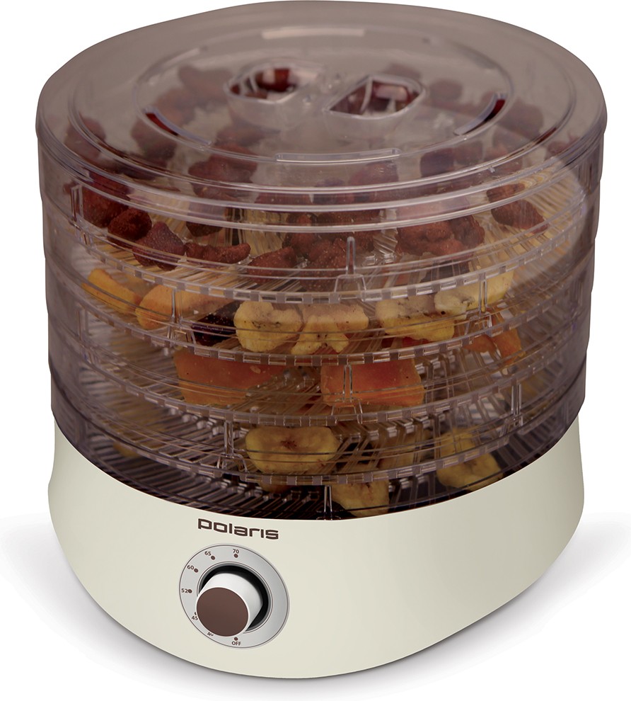 Сушилка Polaris PFD 2305D создана с применением технологии Spin. Поворачивая поддоны, пользователь может регулировать их высоту и даже складывать прибор, облегчая поиск места для его хранения. Система плавной регулировки мощности позволяет использовать устройство для просушивания фруктов, ягод, грибов, хлеба, орехов и многих других продуктов.