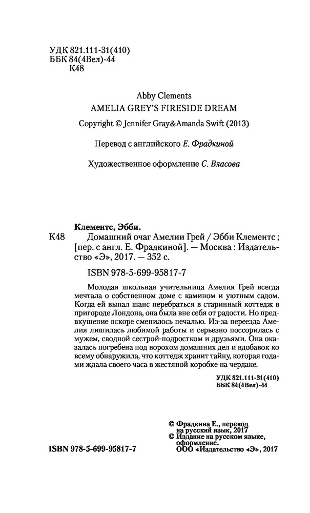 Домашний очаг Амелии ГрейВ данный момент этот товар отсутствует в продаже. Возможно, у нас найдется аналогичный или похожий товар здесь. Серия: Книга-настроение Молодая школьная учительница Амелия Грей всегда мечтала о собственном доме с камином и уютным садом. Когда ей выпал шанс перебраться в старинный коттедж в пригороде Лондона, она была вне себя от радости. Но предвкушение вскоре сменилось печалью. Из-за переезда Амелия лишилась любимой работы и серьезно поссорилась с мужем, сводной сестрой-подростком и друзьями. Она оказалась погребена под ворохом домашних дел и вдобавок ко всему обнаружила, что коттедж хранит тайну, которая годами ждала своего часа в жестяной коробке на чердаке. |