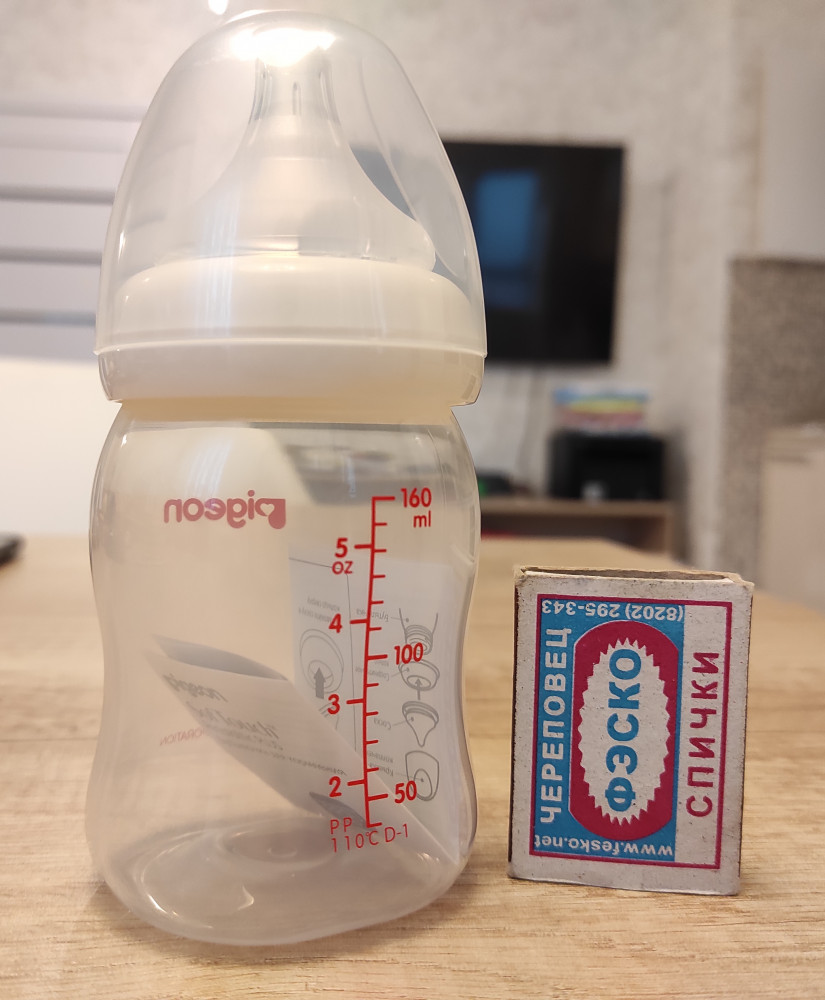 А по факту пришла соска размера SS (от 0+),что немного разочаровало😐 Сам материал соски очень нежный 👍 но мой ребёнок отказывается с неё пить, так как тяжело высасывать! К слову нам почти 2 мес, и я специально заказала бутылочку с сосочкой М😤