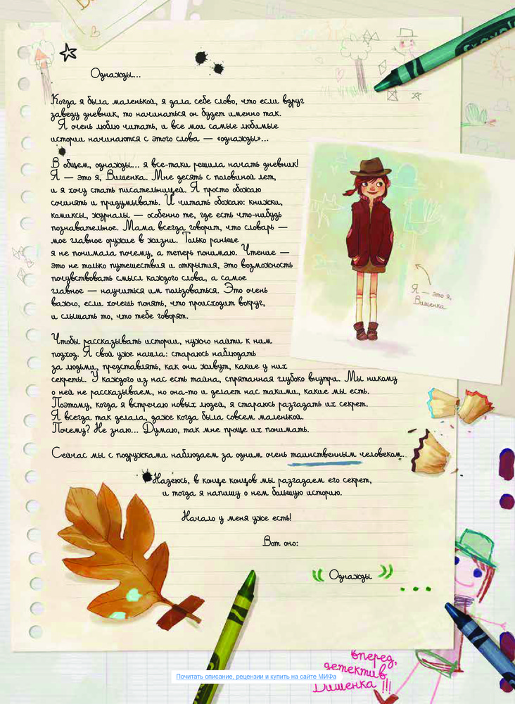 💳 Оплатить за товар можно при получении 🇰🇿 Есть бесплатная доставка по Казахстану от 1 дня 🎁 Копите бонусы с каждой покупки Серия: Дневники Вишенки Вишенке 10 лет и она мечтает стать писателем. По совету писательницы мадам Дежарден она начинает вести дневник, ведь писатель должен уметь выстраивать историю, собирать факты, брать интервью, а главное — наблюдать. Больше всего Вишенке нравится наблюдать за людьми, особенно взрослыми, у которых всегда столько таинственных дел — попробуй, разгадай, что они скрывают! |