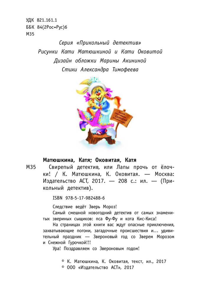 Четвертая книга из серии фу-фу и кис-кис, забавная детективная история, множество иллюстраций и заданий для юных читателей, вполне подходит как для чтения взрослыми детям 4-5 лет, так и для самостоятельного чтения детям 7-8 лет