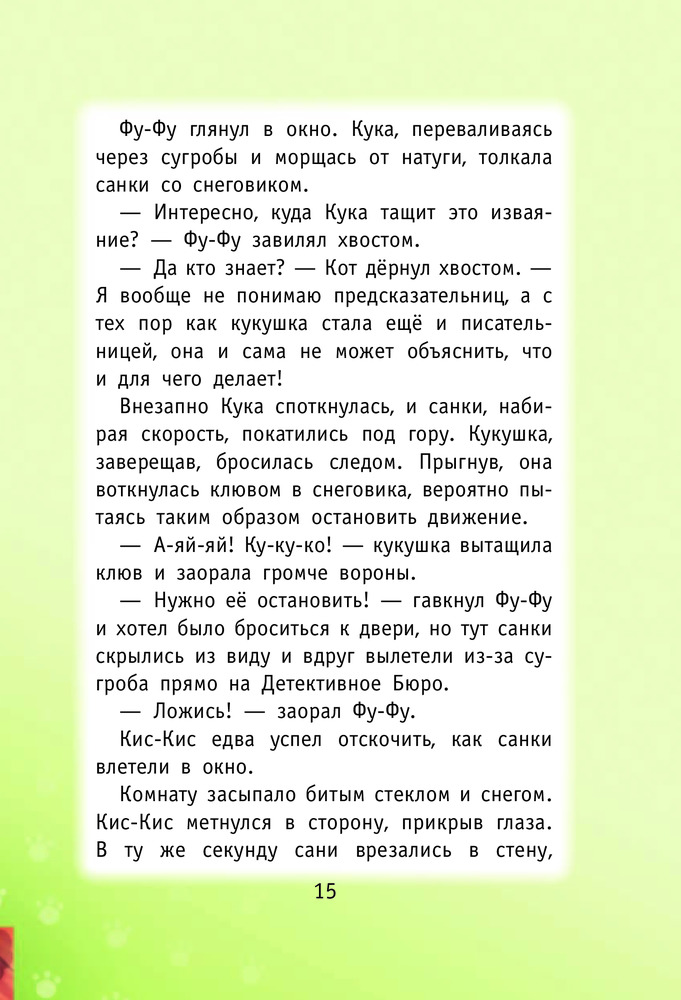 Книга классная, забавная. Мы собрали почти всю серию приключений фу-фу и кис-киса. Заказали в подарок на новый год, переживали что не успеет придти, но магазин Флип не подвел, все пришло во время, большое вам спасибо.