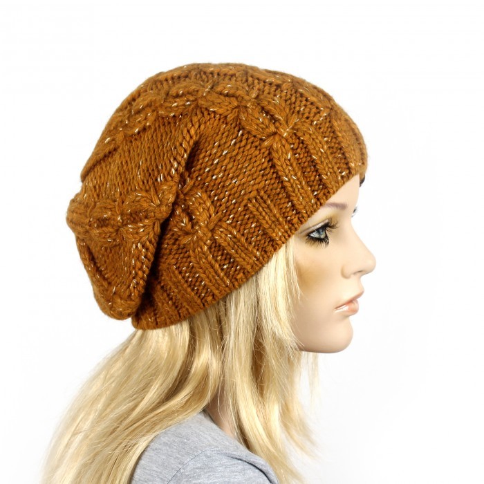 Шапка понравилась. Крупная вязка. Мелкие пайетки. На фото смотрится проще, чем в реальности.