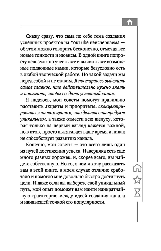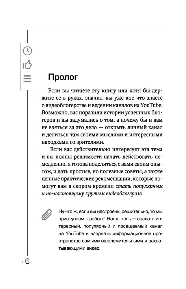 Эта книга окажется полезной только для тех кто только начинает вести свой канал на You Tube или для тех, кто только хочет начать. Для людей которые уже что-то знают в этой сфере, книга может показаться скучноватой. Читается очень легко и быстро. Кстати эту книгу мне доставили уже на следующий день после заказа, за что большое спасибо!