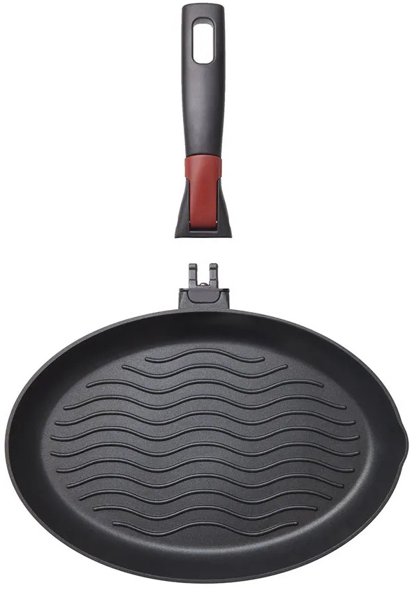 Nadoba Сковорода-гриль для рыбы «Vilma»В данный момент этот товар отсутствует в продаже. Возможно, у нас найдется аналогичный или похожий товар здесь. Серия: Vilma Серия Vilma изготовлена из литого алюминия с особо прочным 4-слойным антипригарным покрытием ILAG Ultimate, усиленным минералами. Антипригарное покрытие ILAG Ultimate не содержит PFOA, кадмий, свинец, а также любых других вредных веществ и полностью безопасно. Высокая прочность антипригарного покрытия позволяет использовать при приготовлении пищи неострые металлические инструменты. Массивный корпус из литого алюминия обеспечивает равномерной нагрев всей поверхности посуды и не деформируется при нагревании или после частого использования. Специальный термо-индикатор меняет цвет от черного до красного в зависимости от температуры сковороды. Красный цвет показывает, что достигнут оптимальный для начала приготовления нагрев до 160 °C. Удобная прочная ненагревающаяся съемная ручка из бакелита позволяет экономить пространство на кухне и использовать посуду в духовке. Подходит для всех типов плит, включая индукционные, а также для духовки если снять ручку или при температуре до 180 °C. Гарантия на алюминиевую посуду серии Vilma 5 лет. |