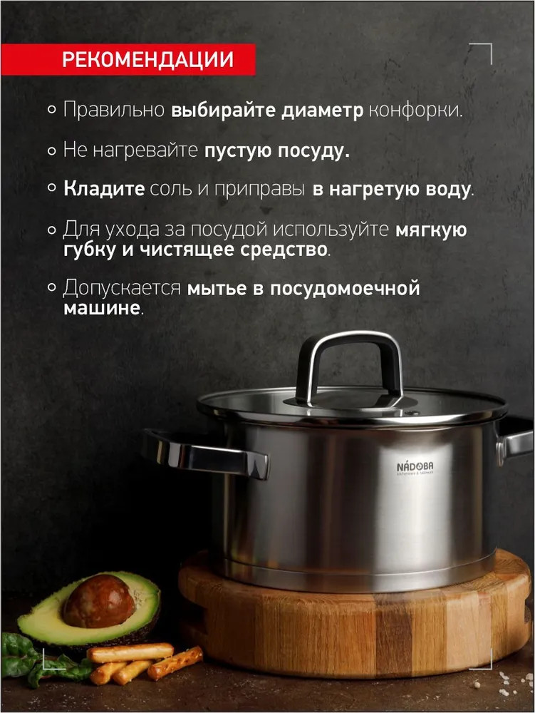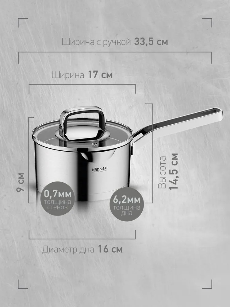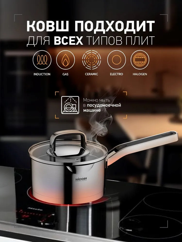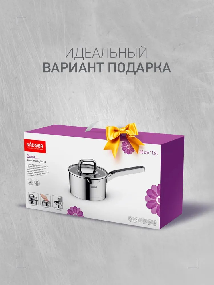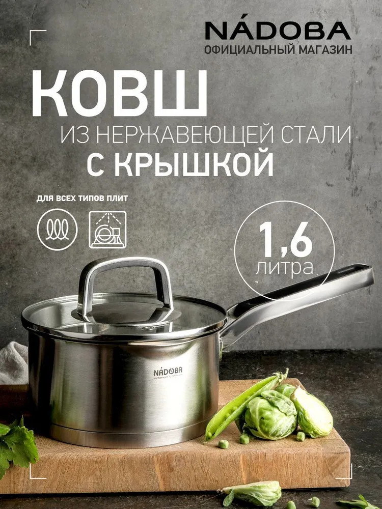 Nadoba Ковш с крышкойВ данный момент этот товар отсутствует в продаже. Возможно, у нас найдется аналогичный или похожий товар здесь. Серия: Dona Вся посуда серии Dona изготовлена из высококачественной нержавеющей стали 18/10. Прочное трехслойное капсульное дно изделий служит для равномерного распределения тепла по всей площади посуды. Встроенный дуршлаг на крышках и носики на корпусе посуды делают процесс слива воды простым и легким. При этом для изготовления крышки использовалось термостойкое закалённое стекло. Удобные ненагревающиеся ручки с силиконовым покрытием существенно облегчают работу с нагретой посудой, а благодаря креплению ручек на точечной сварке и отсутствию заклёпок ничто не затрудняет процесс мытья посуды. На внутренних стенках посуды нанесена маркировка литража для простого определения необходимого объема воды и продуктов. Подходит для всех типов плит, включая индукционные. |