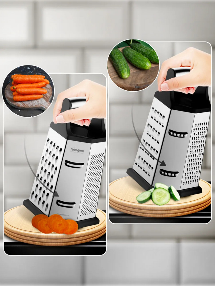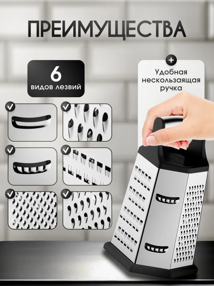 Удобная терка, много разных вариантов нарезки , хорошо заточена