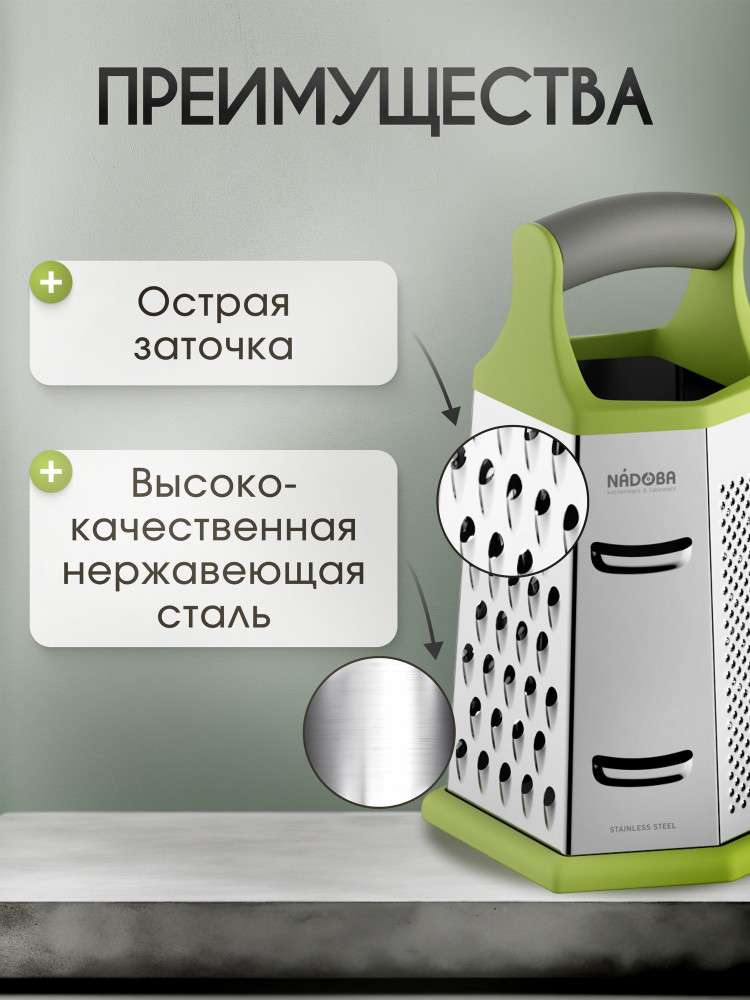 Nadoba Терка универсальная+170 острые лезвия устойчивая основа удобная ручка съёмный силикон вариативность нарезки