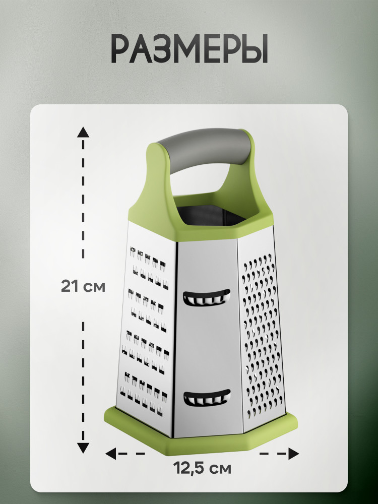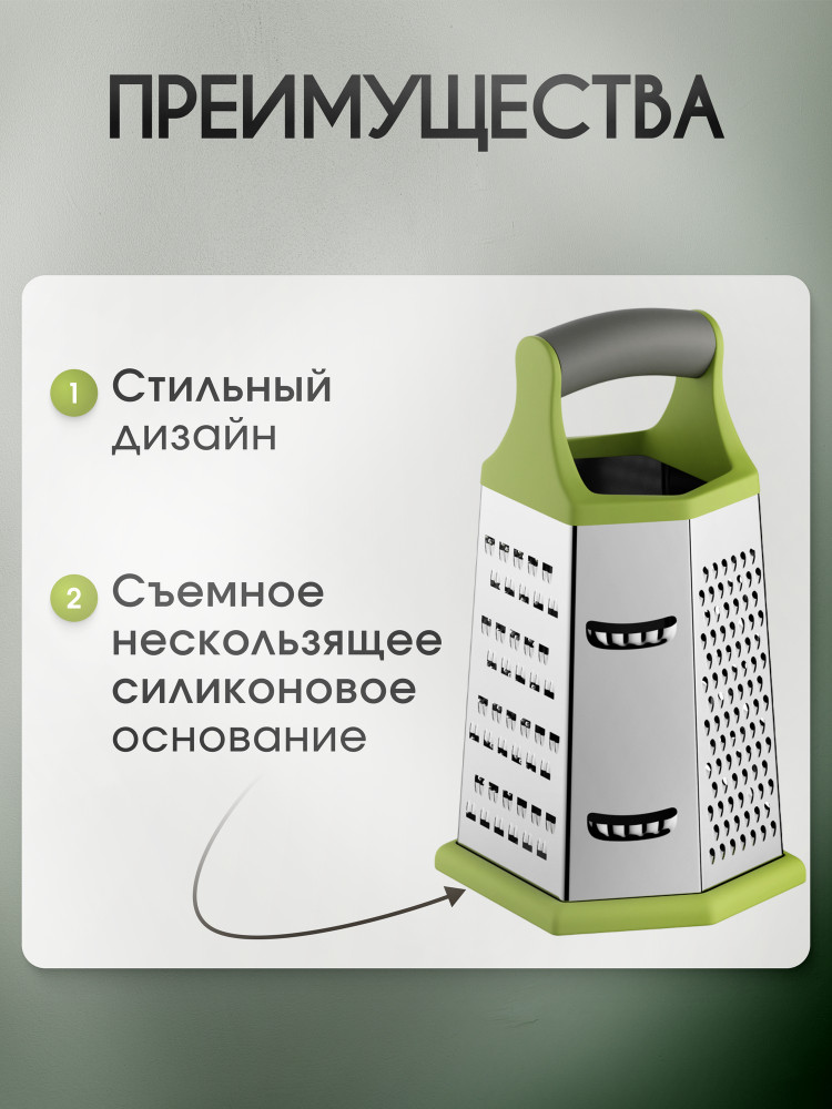 Впервые у меня такая тёрка, такой прочный металл, острые лезвия, устойчивая, ешё и со съёмным силиконом внизу. Очень довольна приобретением. Приходит в пакете.