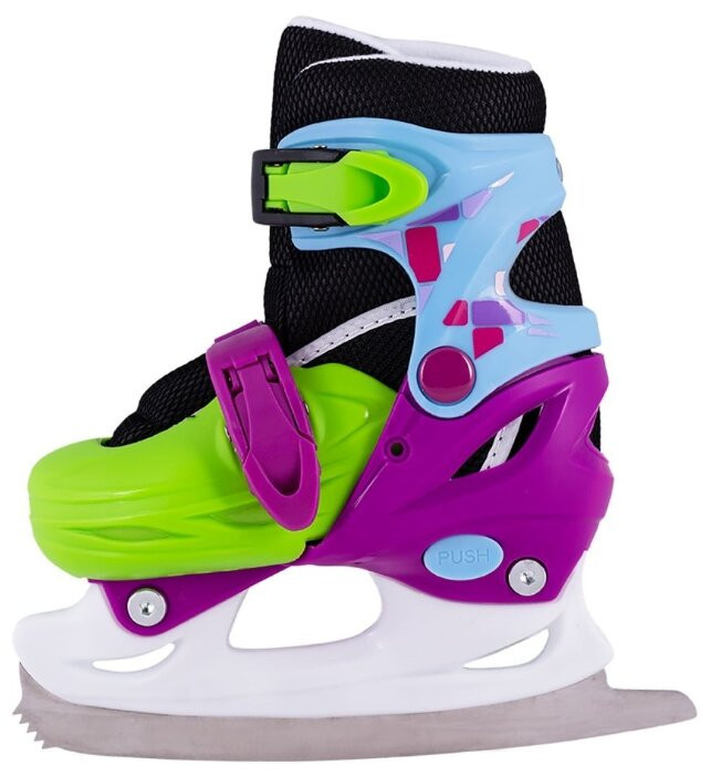 Заказывала коньки 34-37 размера, думала, что хватит и на следующий год. У ребенка 33 размер, комфортно было в максимально раздвинутом состоянии. Примеряли на два тонких носка. Шнуровки внутри нет, поэтому сверху нога осталась еле прикрыта. На мой взгляд, коньки маломерят. Нужный размер устанавливается без труда, крепления фиксируются хорошо. Возможно, не наш вариант.