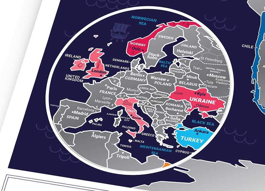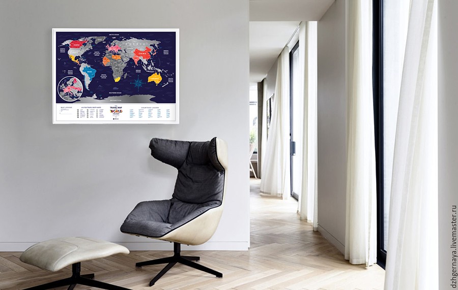 Классная карта, красиво смотрится на стене. Есть интересные замечания на самой карте, типа нарисован пиратский корабль на Карибском море)))