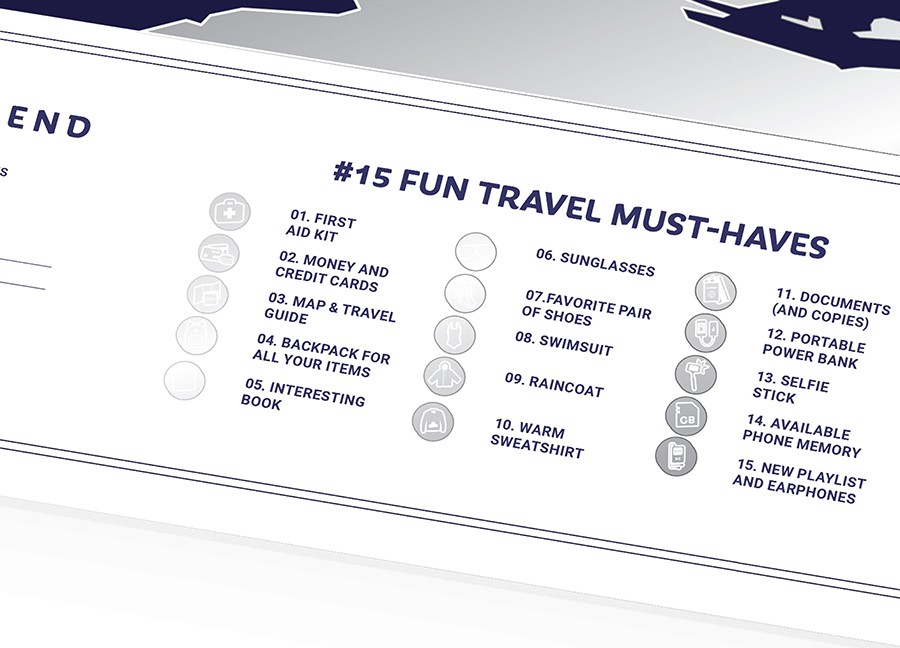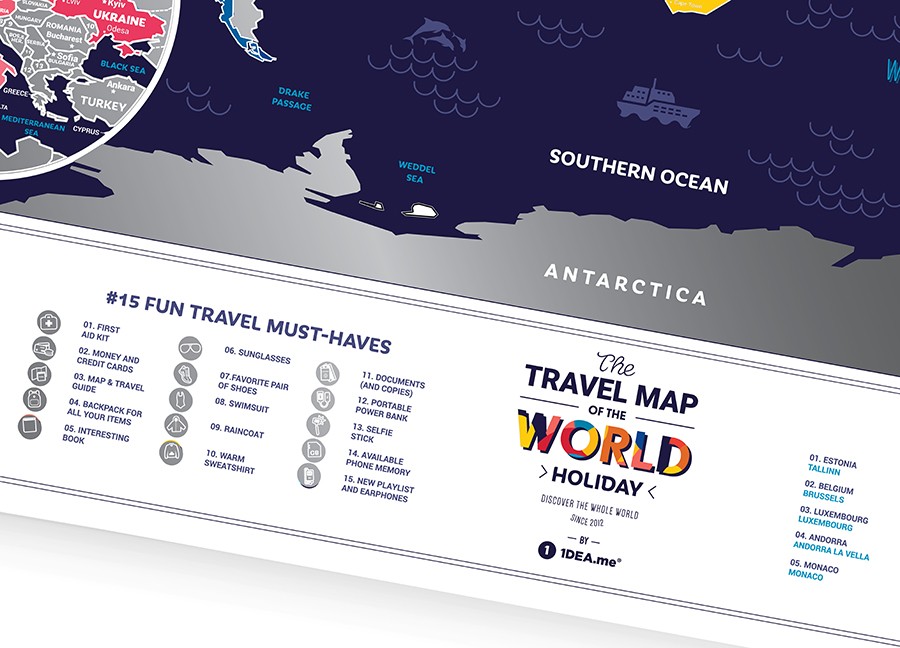 1Dea.me Карта Travel Map Holiday WorldВ данный момент этот товар отсутствует в продаже. Возможно, у нас найдется аналогичный или похожий товар здесь. Куда сходить, что увидеть, чему научиться во время отпуска? Travel Map Holiday World все расскажет и покажет. Карта напомнит о 15 самых важных вещах в поездке: какие документы, одежду, гаджеты, аксессуары желательно взять, чтобы отпуск получился идеальным. |