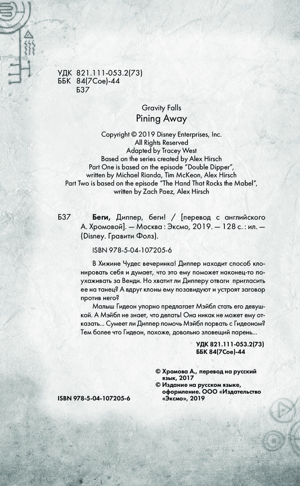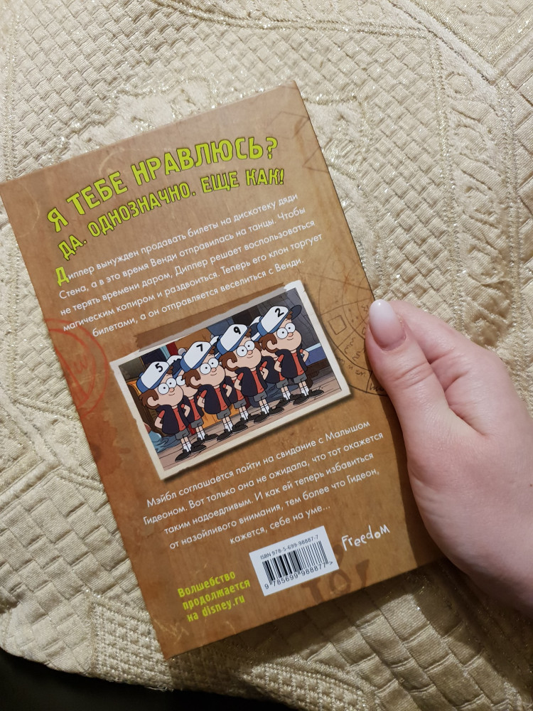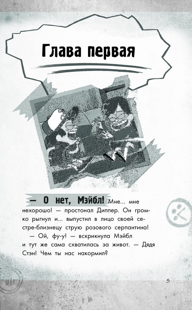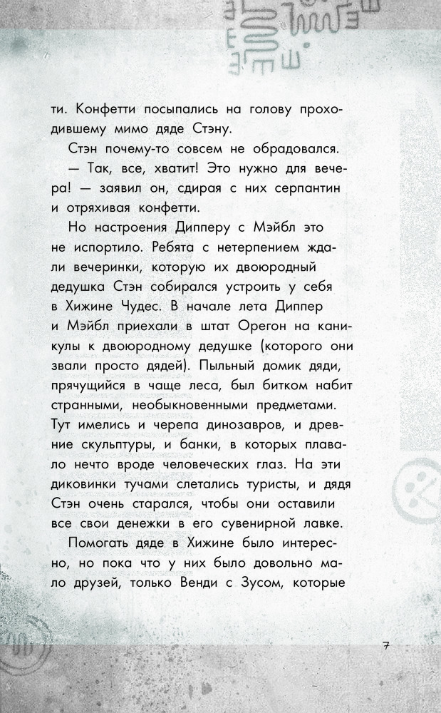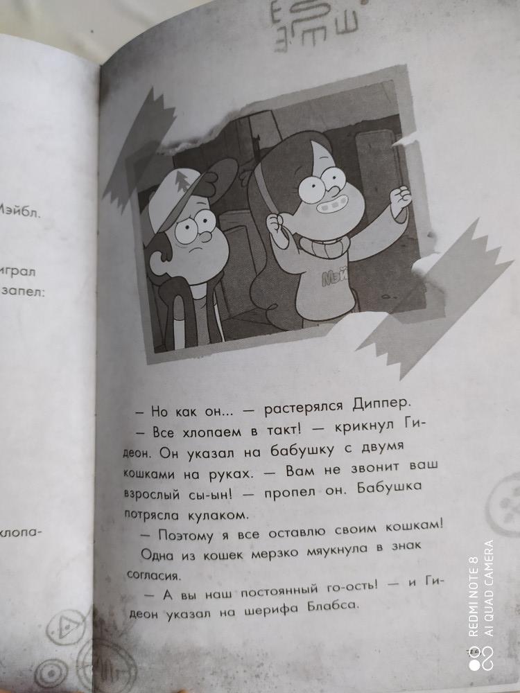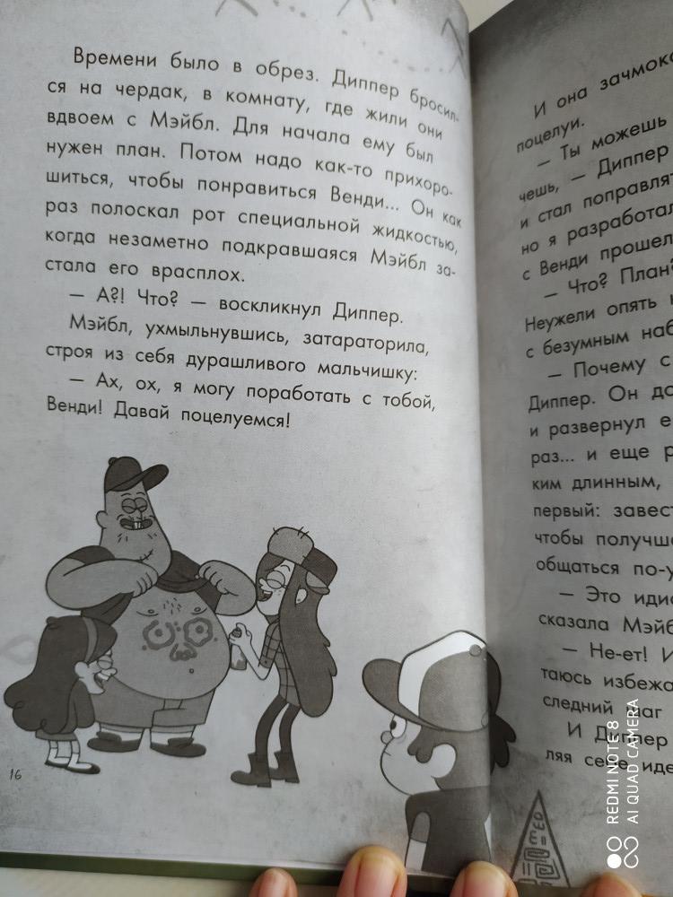 Качественно выполненная книга: черно-белые иллюстрации, крупный шрифт, плотные листы. История Гравити Фолз, о содержании сказать не могу - читать будет племянница. Спасибо, Флип!