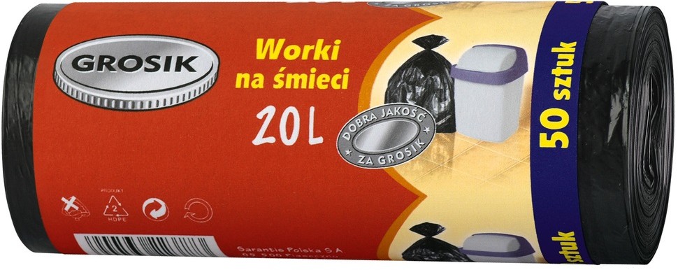 Grosik Пакеты для мусора (20 л), 50 штукВ данный момент этот товар отсутствует в продаже. Возможно, у нас найдется аналогичный или похожий товар здесь. · Сильные и крепкие мусорные пакеты емкостью (20 л), 50 штук; |
