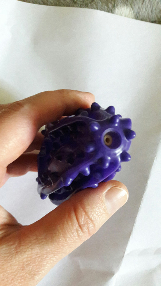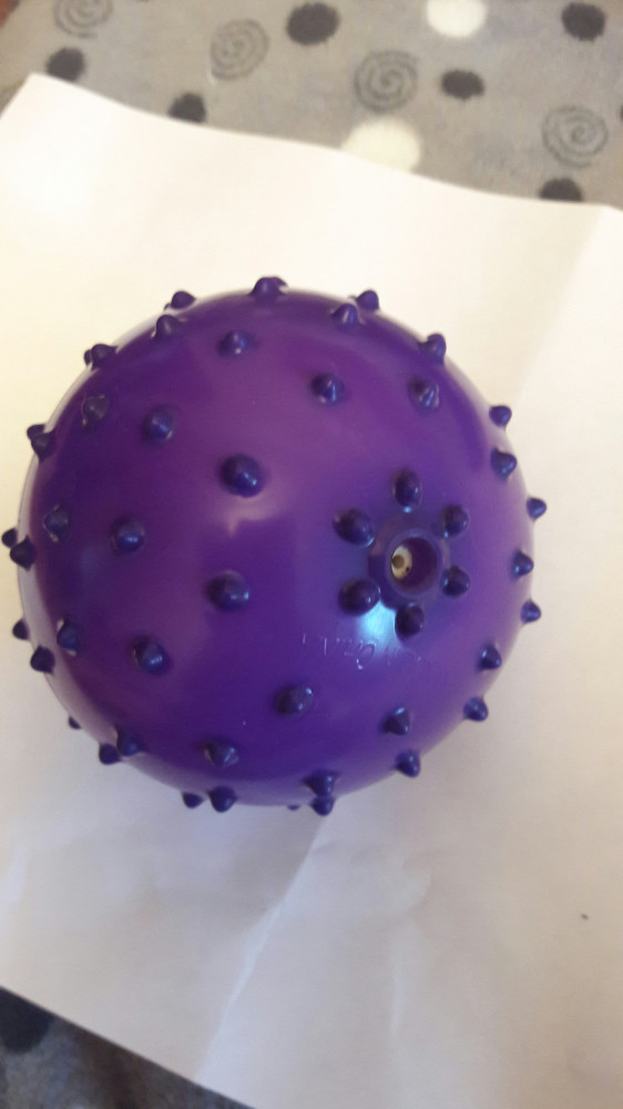 Мяч понравился в использовании. Степень жесткости можно самому регулировать во время накачивания (мяч в сдутом состоянии приходит). Несколько шипов на мяче повреждены, но на качество это не повлияло.