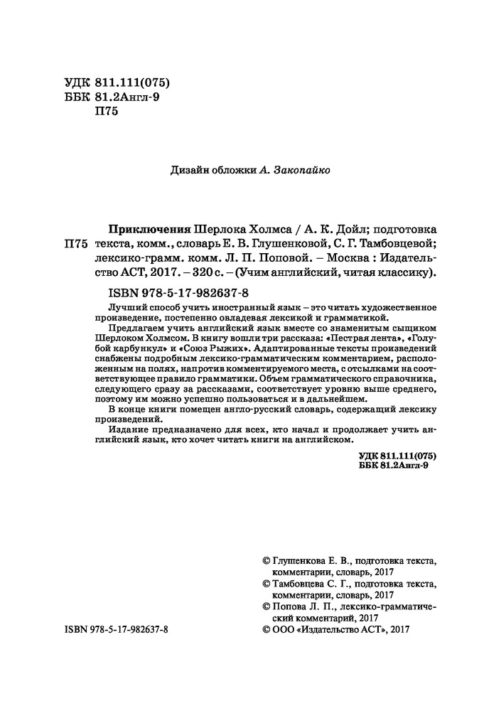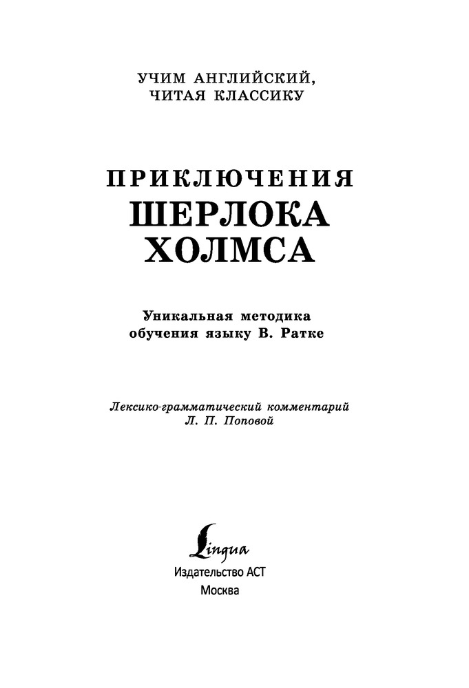 Приключения Шерлока Холмса. Уникальная методика обучения языку В. РаткеВ данный момент этот товар отсутствует в продаже. Возможно, у нас найдется аналогичный или похожий товар здесь. Лучший способ учить иностранный язык – это читать художественное произведение, постепенно овладевая лексикой и грамматикой. |