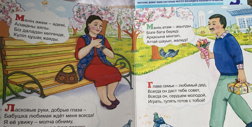Соглашусь с предыдущим отзывом, качество супер, страницы твердые, картинки красивые, стишки на казахском и русском языке. Купила для дочки 4,5 лет, чтоб учить стихи на казахском.