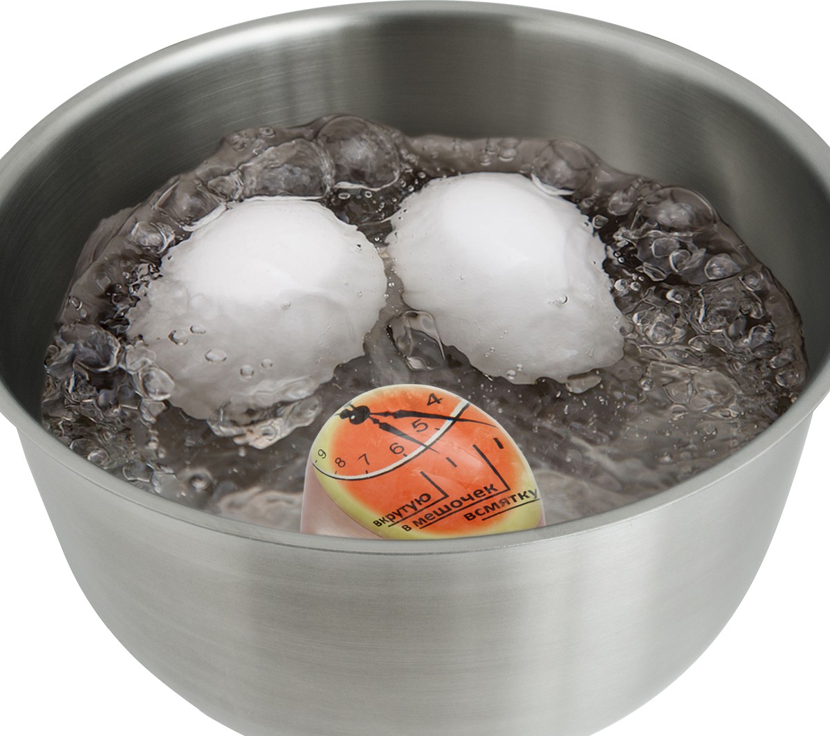 Очень полезное приспособление для варки яиц с различной степенью готовности. Можно не ждать когда закипит вода и засекать время для варки яйца- изменение цвета с красного на желтый произойдет всегда. Яйца варятся до нужной степени готовности как при кипящей воде, так и при слабом кипении воды, из одной кастрюли получаются яйца всмятку, в мешочек и вкрутую- главное вовремя достать их из кастрюли.